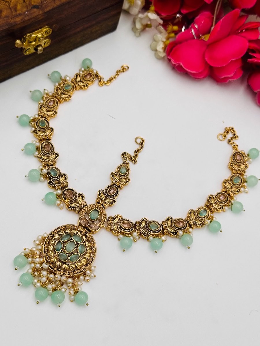 qExplore exquisite handmade ALAMZEB mathapati, a true reflection of elegance and tradition. Adorn yourself with timeless pieces crafted with intricate details and impeccable artistry. Elevate your style with the allure of these stunning accessories, perfect for adding a touch of sophistication to any ensemble.