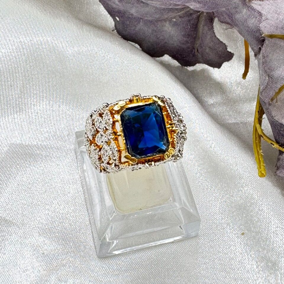 ZEBA GOLD PLATED RING – BLUE