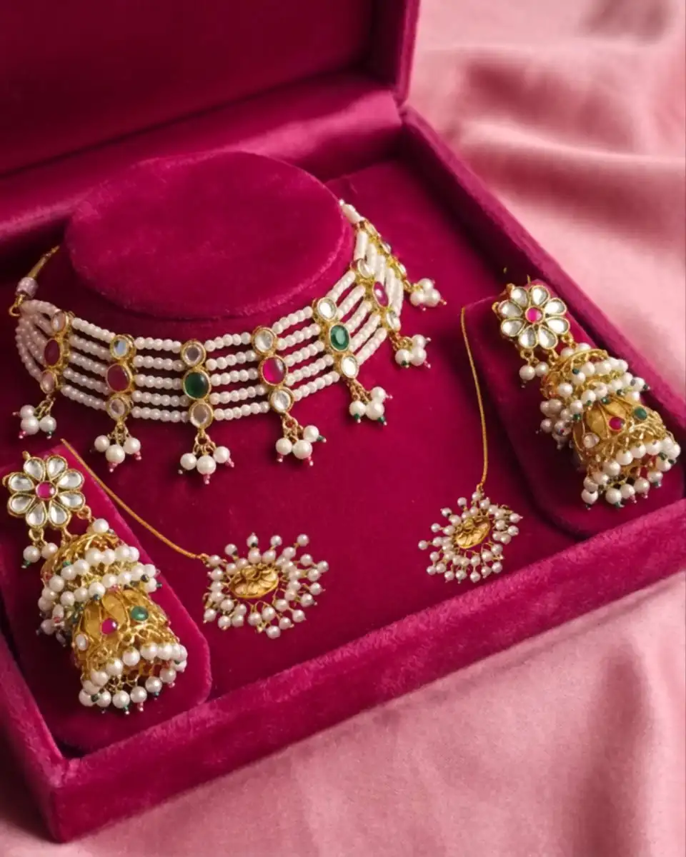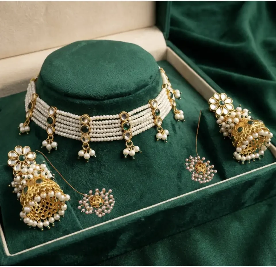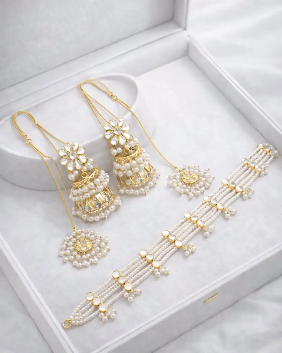 AYEZA HEADPATI JHUMKI SET – WHITE