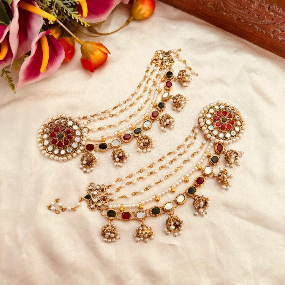 DIL ARAA SAHARY EARRINGS – MAROON GREEN