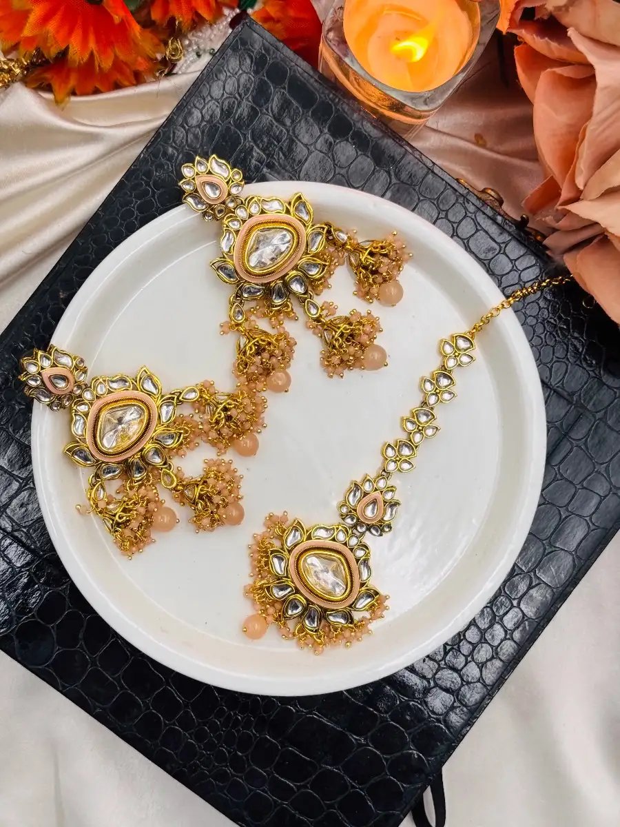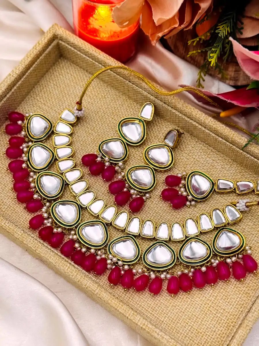 Jaipur Jewelry Online, Traditional Indian Necklace, Kundan Earrings and Tikka, Ethnic Jewelry Set,