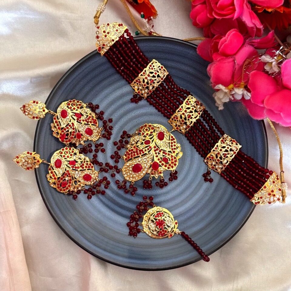 SOHAI SHE3SHPATI SET- MAROON GREEN