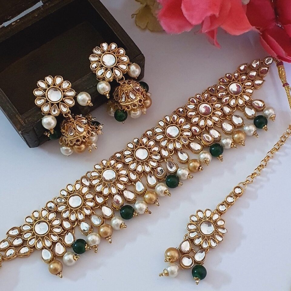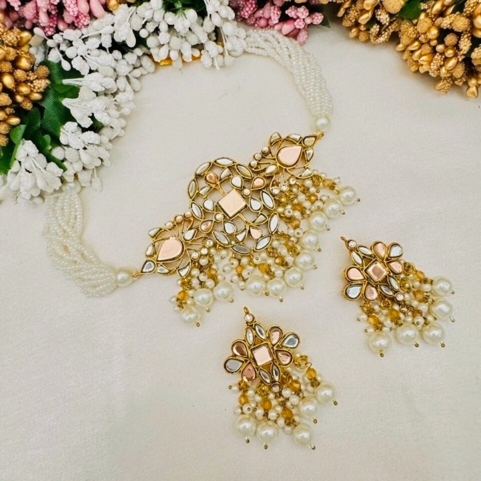 Discover the exquisite Meenakari choker set that perfectly combines traditional elegance with modern charm. Adorn yourself with intricate designs and vibrant colors, handcrafted to perfection. Elevate your style with this stunning piece that captures the essence of craftsmanship and beauty.