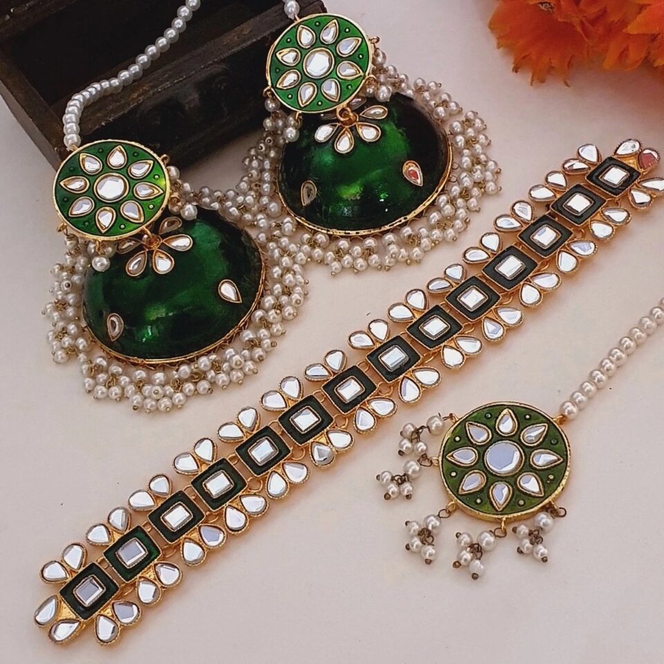 Discover the enchanting allure of our traditional handmade kundan Party Wear Set, artfully crafted to elevate your elegance. This stunning ensemble features intricate kundan detailing and a matching bindi, making it the perfect choice for special occasions. Embrace the timeless beauty and cultural richness of this exquisite jewelry set, designed to make you shine with grace and sophistication.