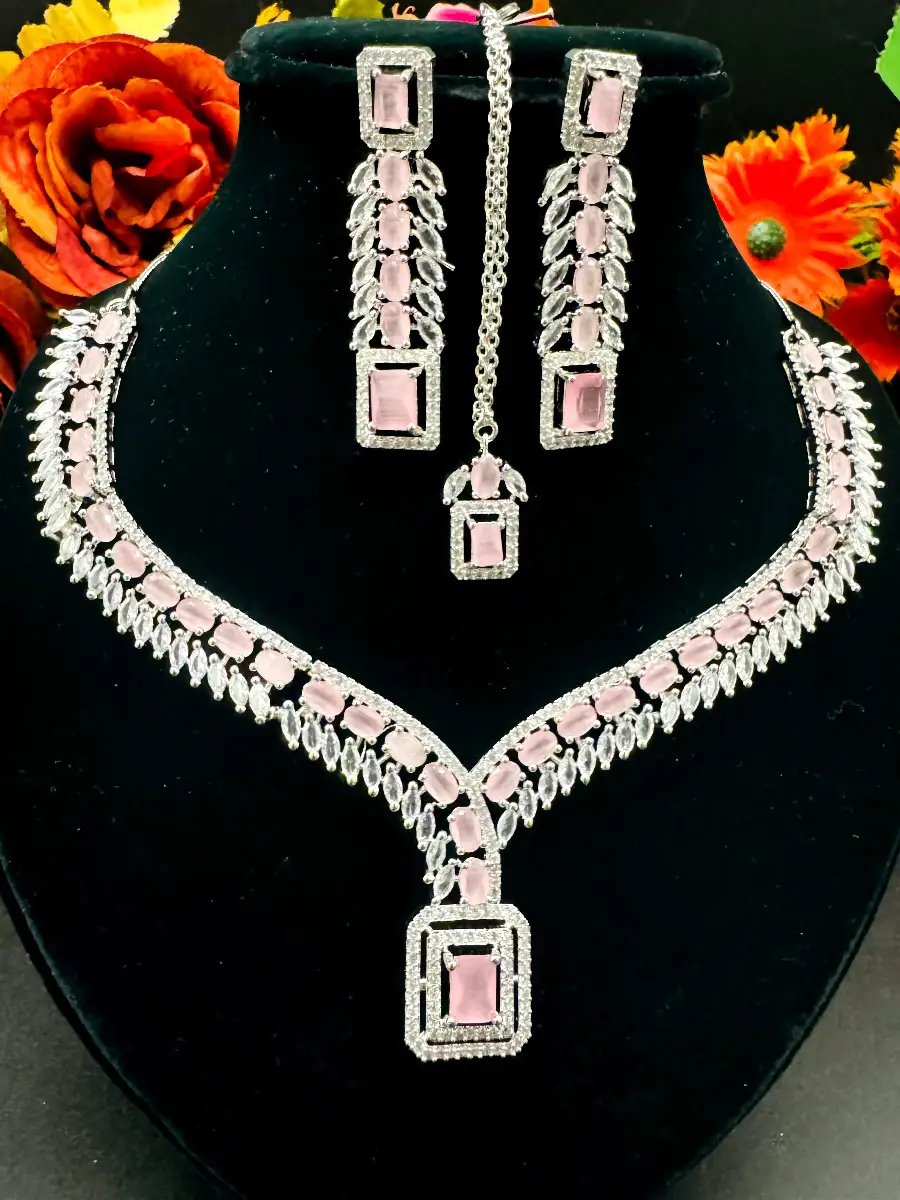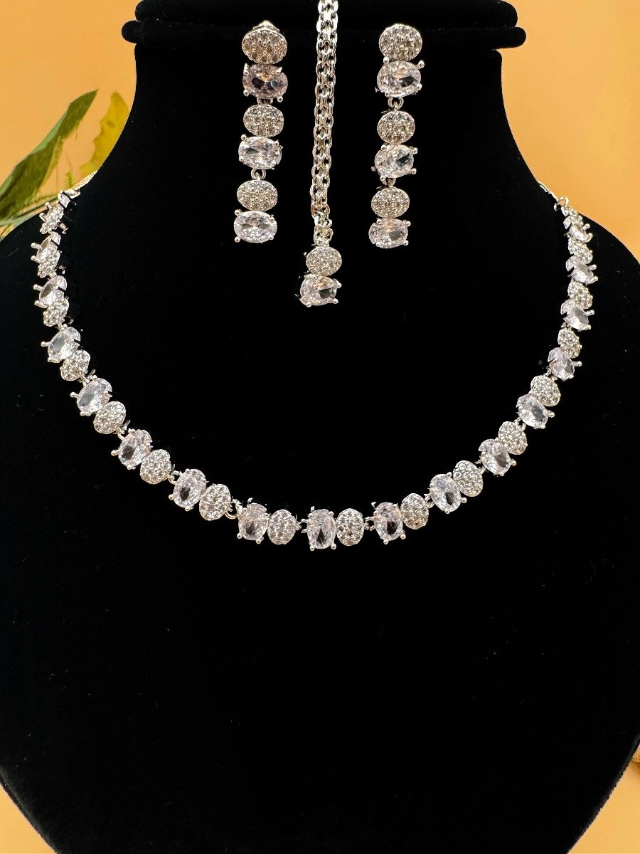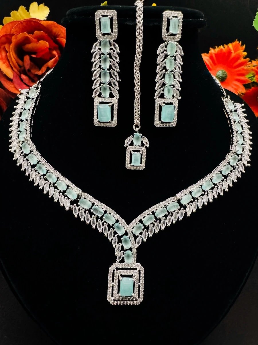Elevate your party look with our stunning zircon-studded necklace set. This exquisite jewelry features radiant, sparkling zircon stones that catch the light beautifully, adding a touch of glamour to any outfit. Perfect for special occasions, this set combines elegance and sophistication, ensuring you stand out at every event. Make a lasting impression with this must-have accessory.
