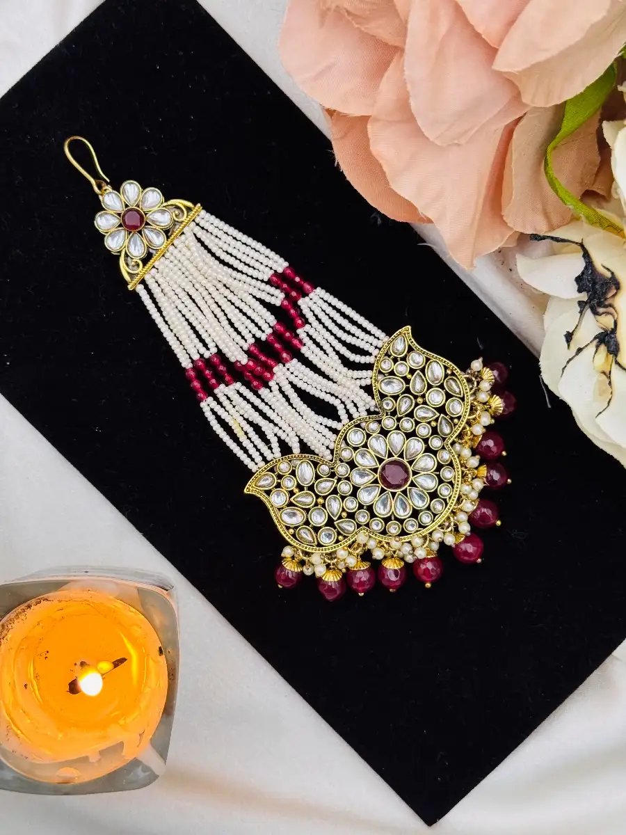 Pakistani Wedding Jewelry, Mehndi Jewelry, Ethnic Bridal Jewelry, Pearl and Kundan Jhoomer, Handmade Jewelry Pakistan, Head Jhoomer for Bride