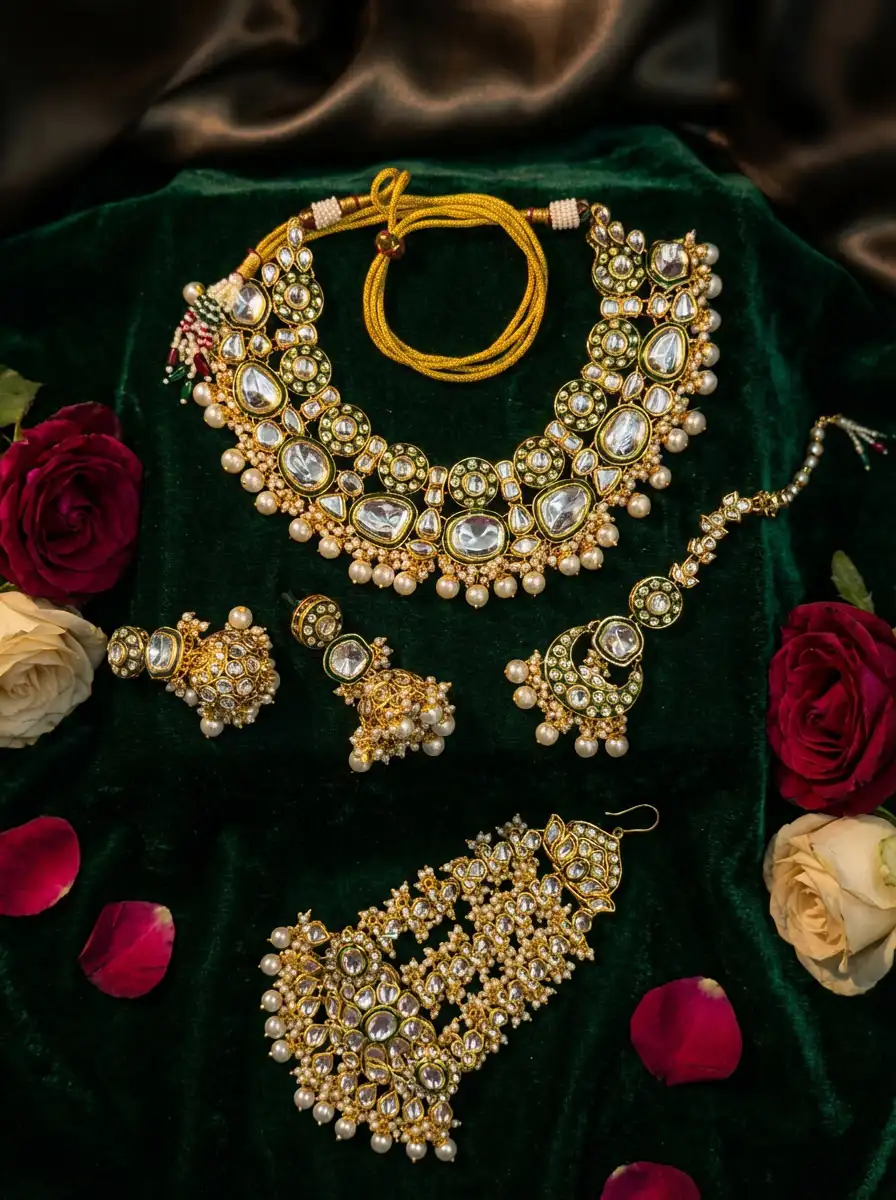 polki kundan bridal set, original polki kundan necklace, kundan bridal jewelry pakistan, bridal necklace set, heavy kundan set,