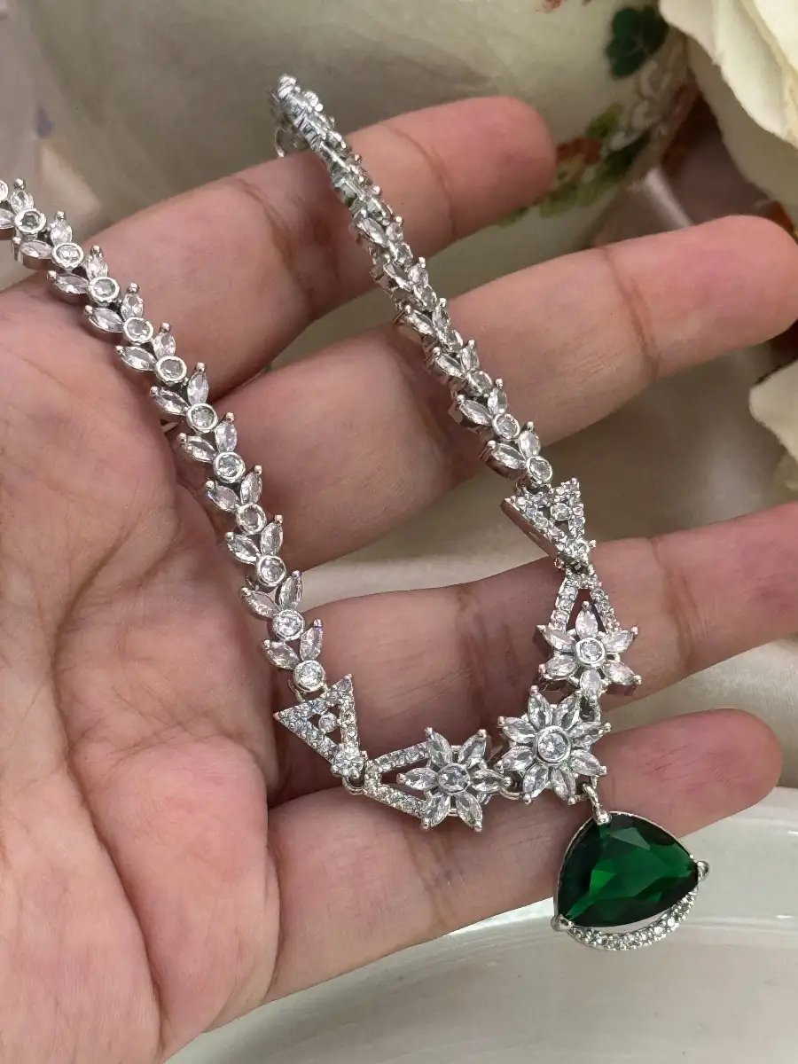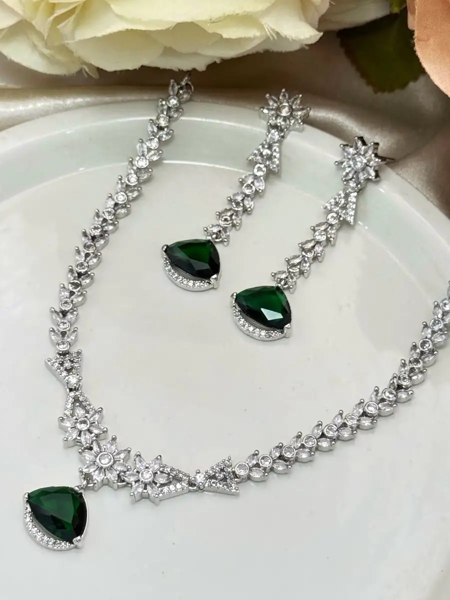 zircon necklace set, green stone necklace pakistan, zircon bridal set