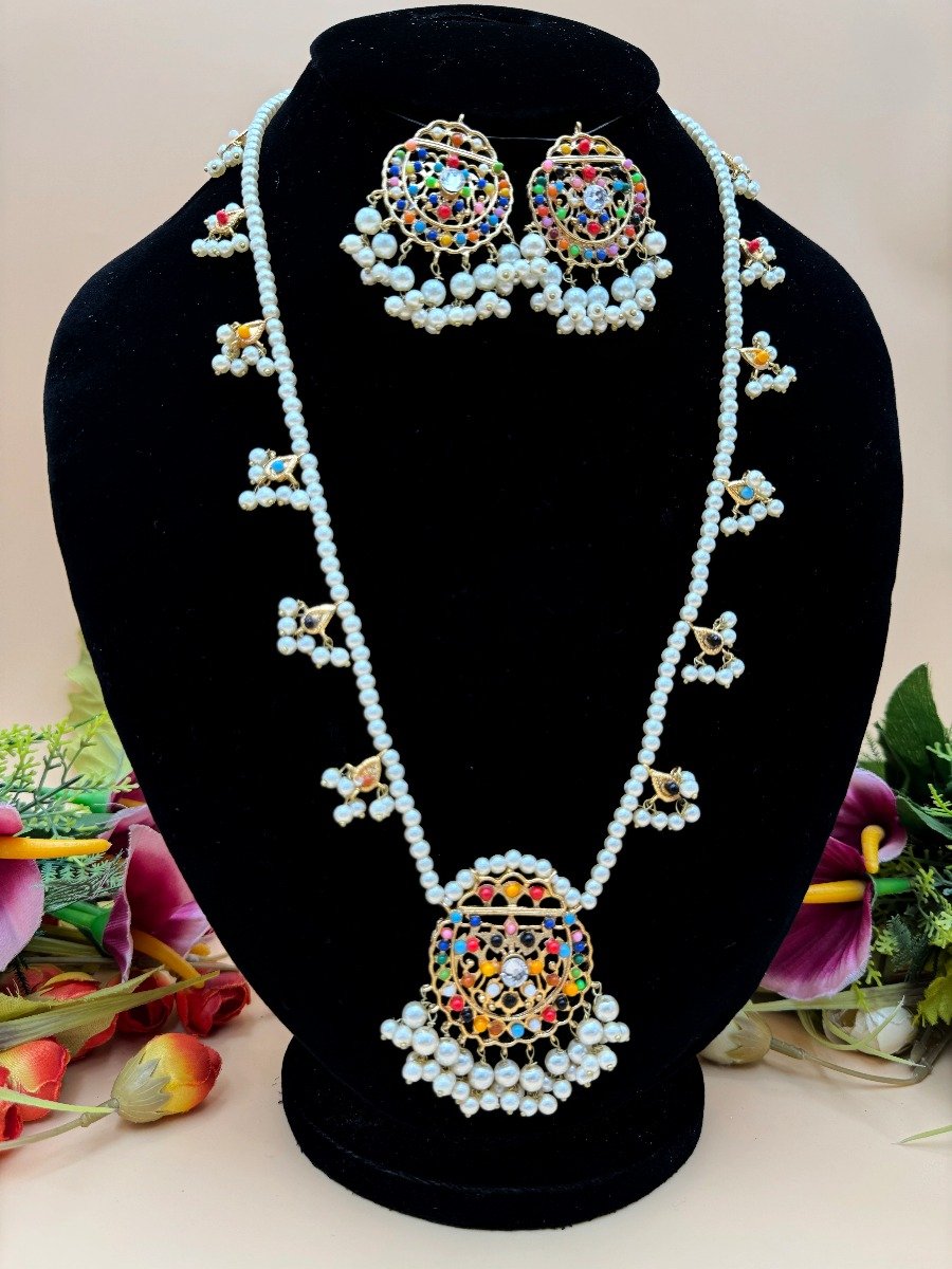 Add a touch of tradition and elegance to your party wear with our stunningly handcrafted Ayezal Mala. Adorned with intricate designs and dazzling details, this exquisite jewelry piece beautifully combines classic craftsmanship with modern flair. Perfect for any festive occasion, this enchanting mala will enhance your look and make you the center of attention. Embrace your heritage and shine brightly with this must-have accessory!