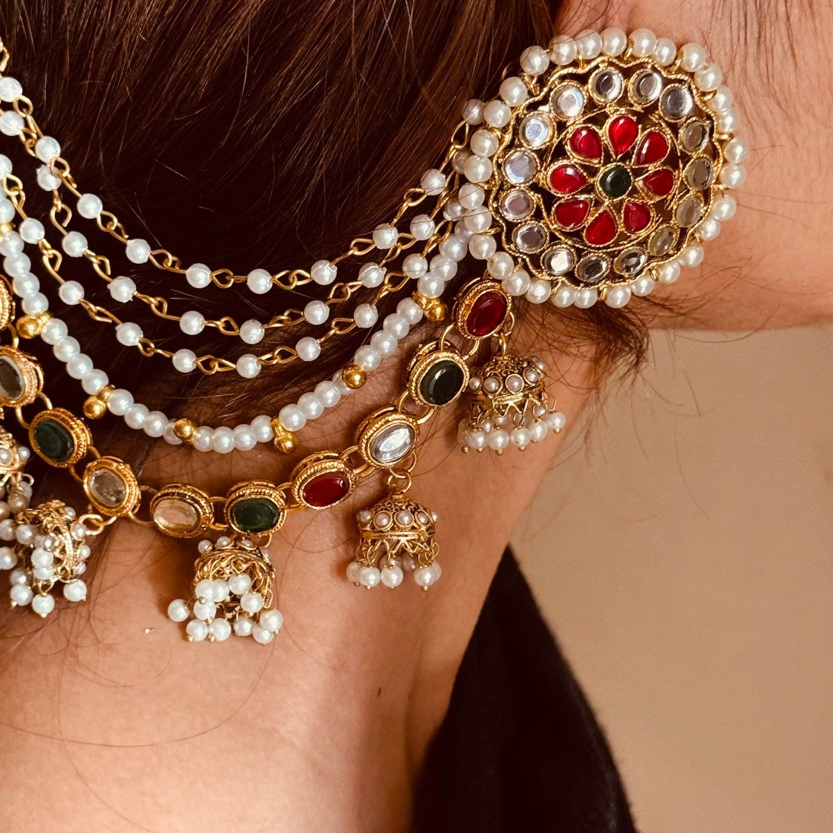 Traditional Dil araa saharay earrings are like little droplets of beauty that sway gently with every movement. They are expertly crafted in high quality material with intricate detailing and plated with gold colour. These saharay earrings are not just mere ornaments; they are an expression of love and tradition. Whether worn for weddings, festivals, or special occasions, traditional sahara never fail to captivate hearts and turn heads. They are a true embodiment of timeless beauty and an exquisite accessory that completes any traditional attire.