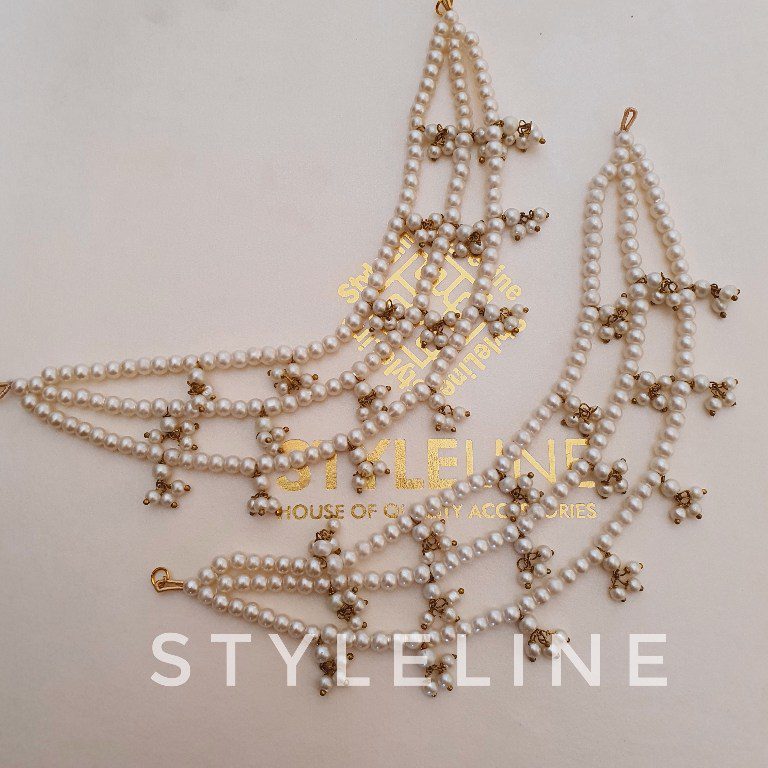 Add regal charm to your bridal ensemble with Styleline’s Premium Bridal Nath, designed for modern brides who desire traditional elegance without the need for piercing. This exquisite nose ring features intricate stone work set in a rich gold-plated finish and beautifully accented with delicate pearls.