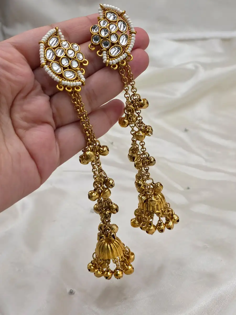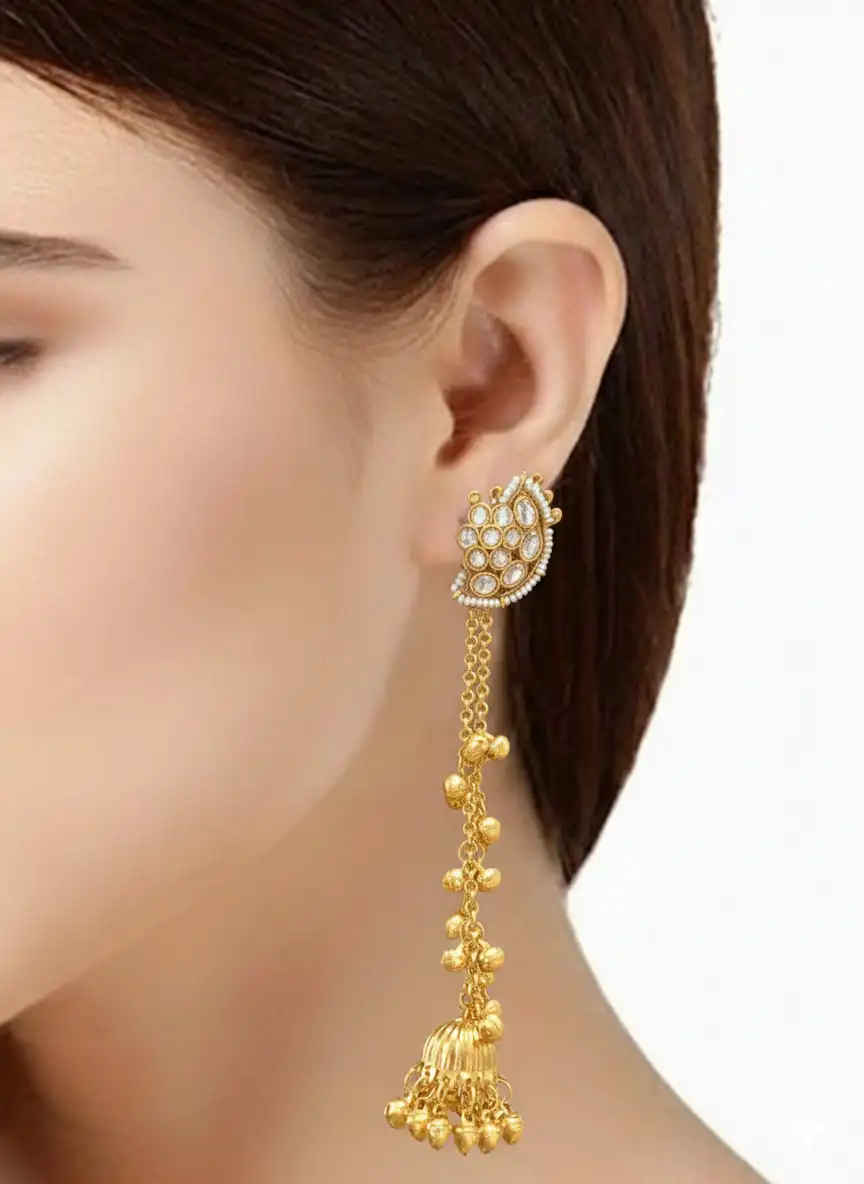 Whether paired with a saree, lehenga, gharara, or formal shalwar kameez, these earrings add regal charm and graceful movement to your look.