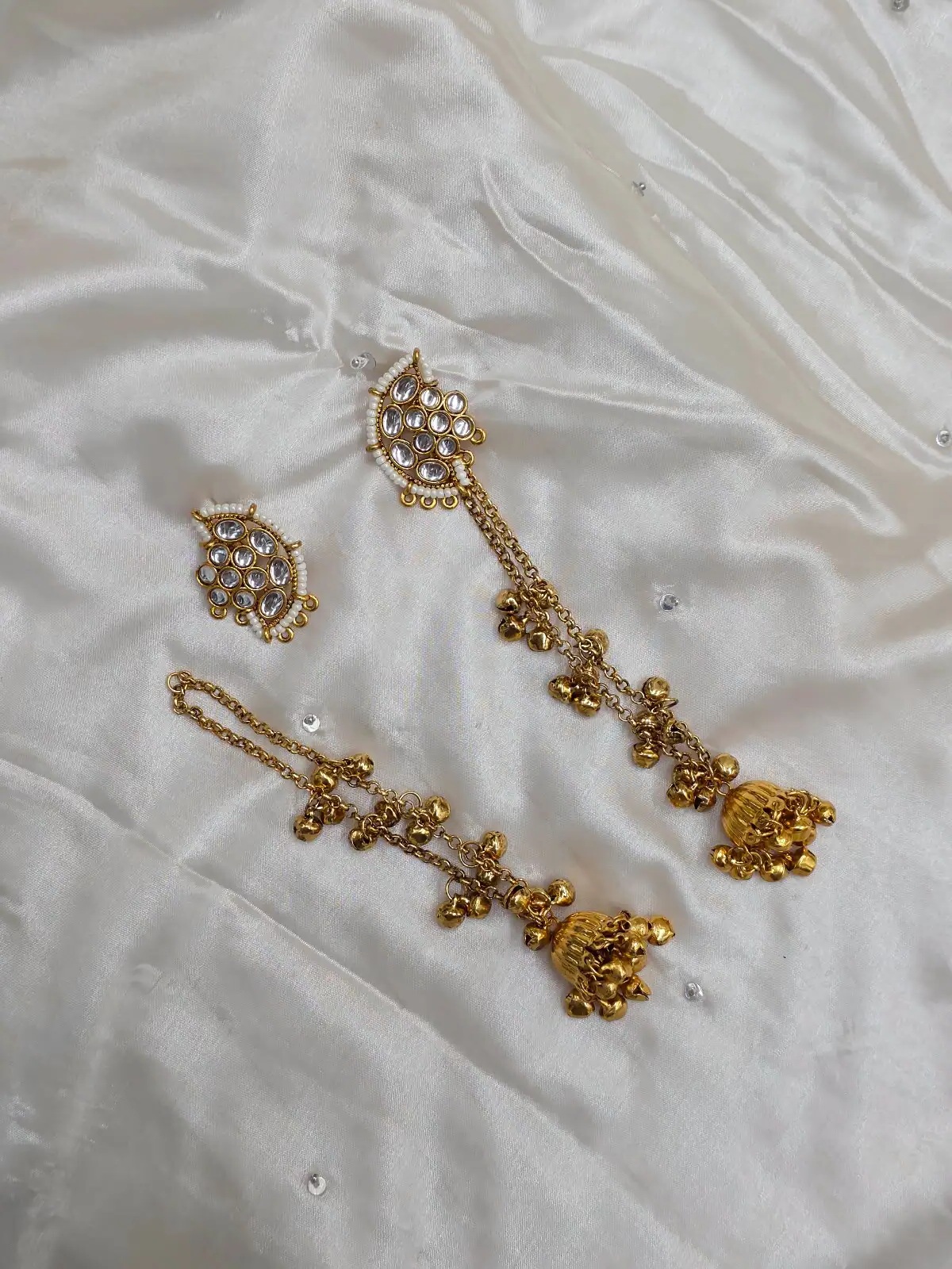 Introducing the latest launch from Styleline – our exquisite Kashmiri Detachable Chain Earrings, a perfect blend of traditional craftsmanship and modern versatility. Inspired by classic Kashmiri jewelry artistry, these statement earrings feature a beautifully detailed stud adorned with kundan stones and delicate pearl beading, paired with long detachable cascading chains and elegant jhumka drops.