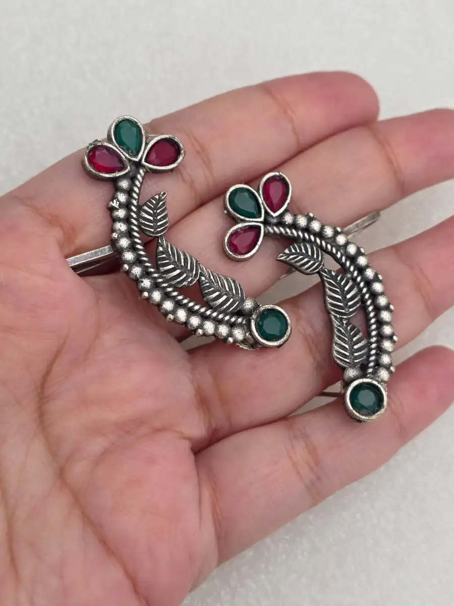 Make a bold style statement with StyleLine’s oxidized ear cuff, featuring elegant maroon and green stone accents with intricate leaf detailing.This trendy yet traditional piece is perfect for festive wear, casual styling, and modern Pakistani fashion looks.