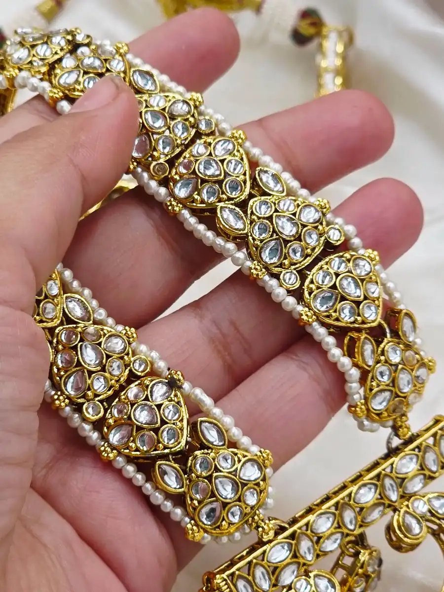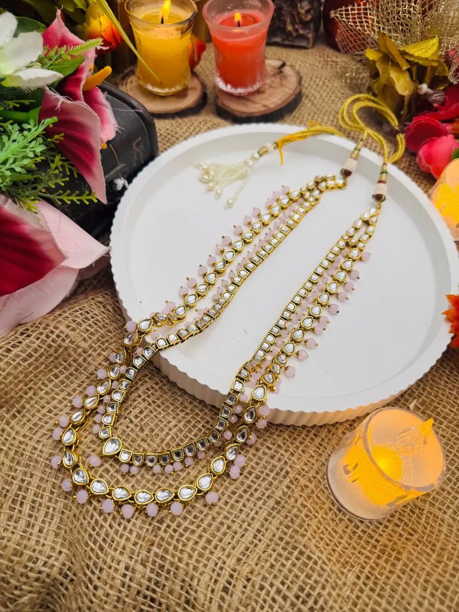 Designed to complement formal wear, mehndi outfits, festive ensembles, and formal eastern attire, this long kundun mala adds instant grace and grandeur to your look. The adjustable dori closure ensures a comfortable fit, making it both stylish and practical.