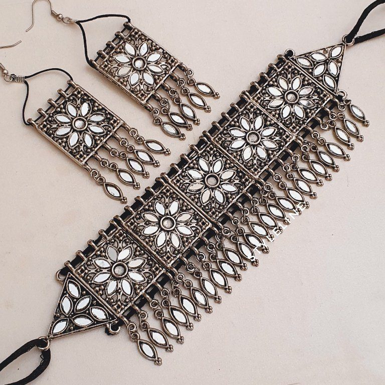 Elevate your party attire with our exquisite antique silver mala set. Handcrafted with intricate detailing, this stunning piece combines timeless elegance with a touch of modern charm. Perfect for any occasion, it adds a sophisticated glow to your ensemble, making you the center of attention. Embrace tradition and style with this enchanting accessory!