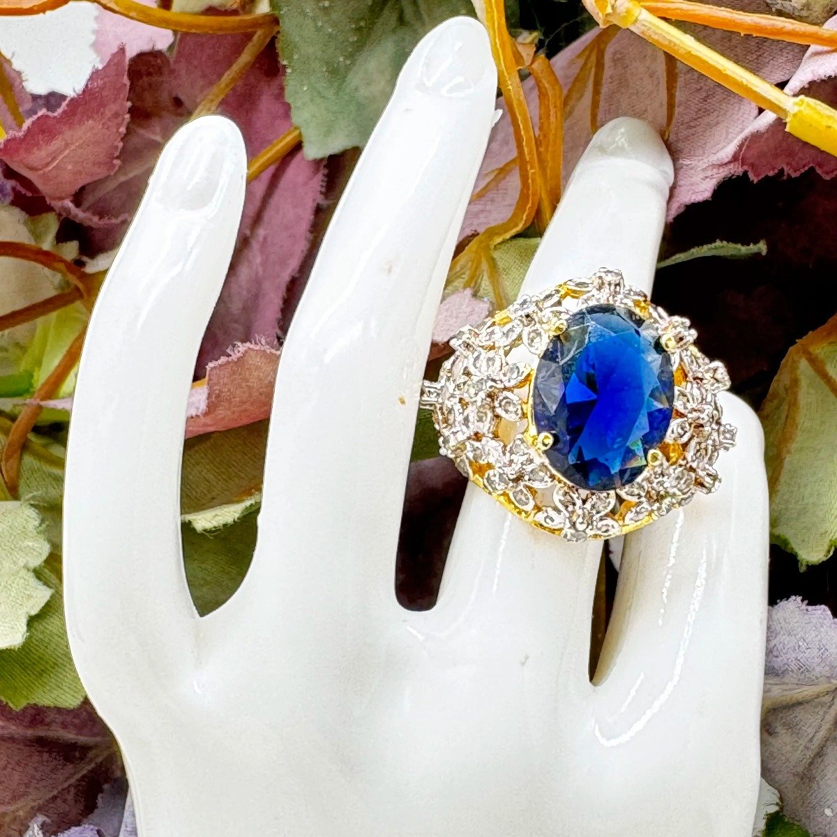 Make a statement with our exquisite Tanya gold plated ring, radiating beauty and elegance. Perfect for adding a touch of sparkle to your ensemble. Elevate your style with this stunning piece that glistens with every movement. Stand out at any event with this beautiful and dazzling ring.