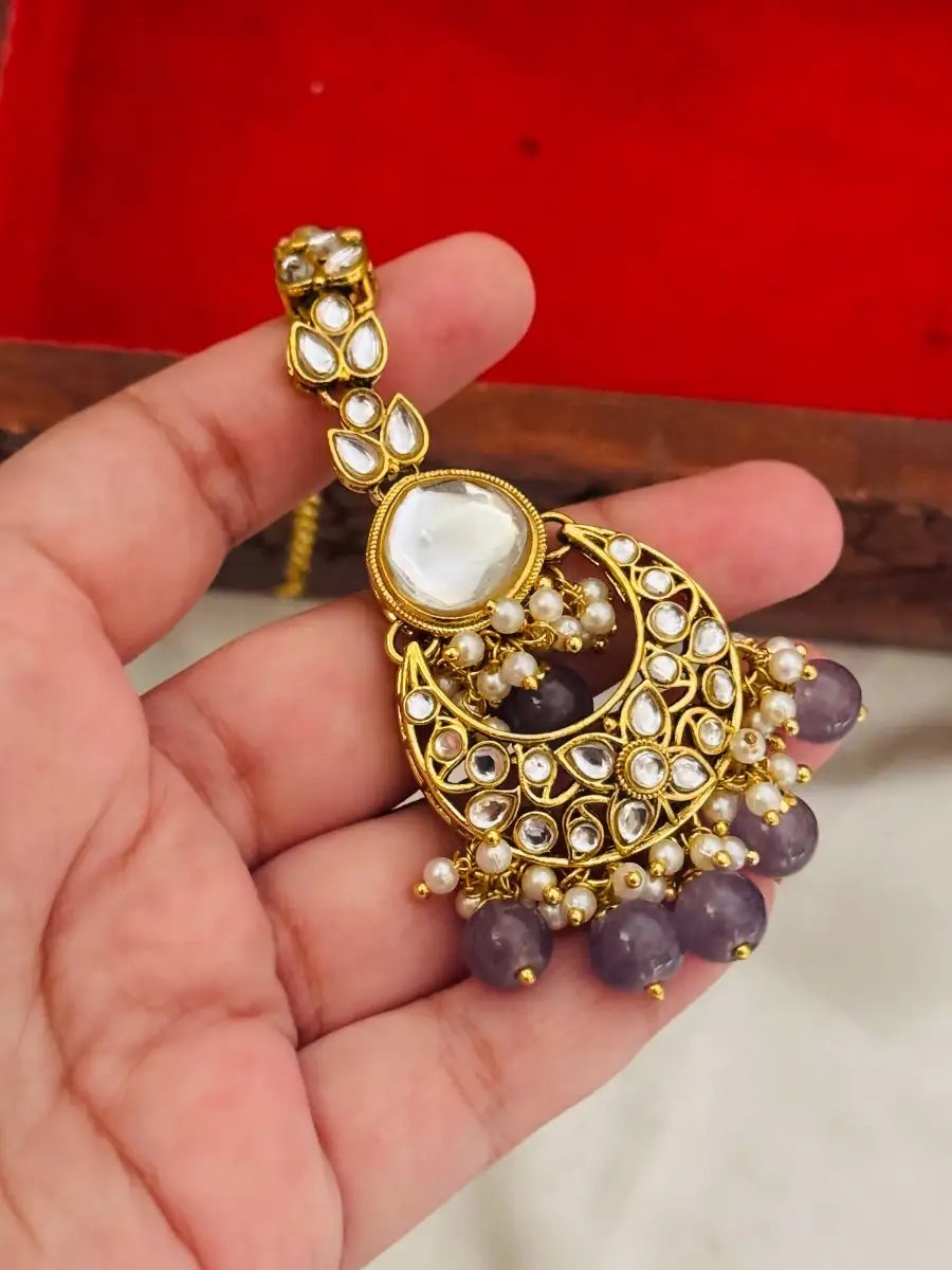Turn heads with this stunning handcrafted Jaipuri Kundan set, featuring a regal necklace, classic jhumka earrings, and an elegant maang tikka. Embellished with intricate kundan work, delicate pearls, and colored beads, this set is a must-have for brides, bridesmaids, and festive occasions.