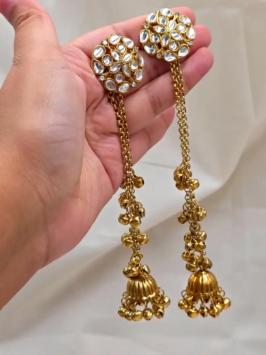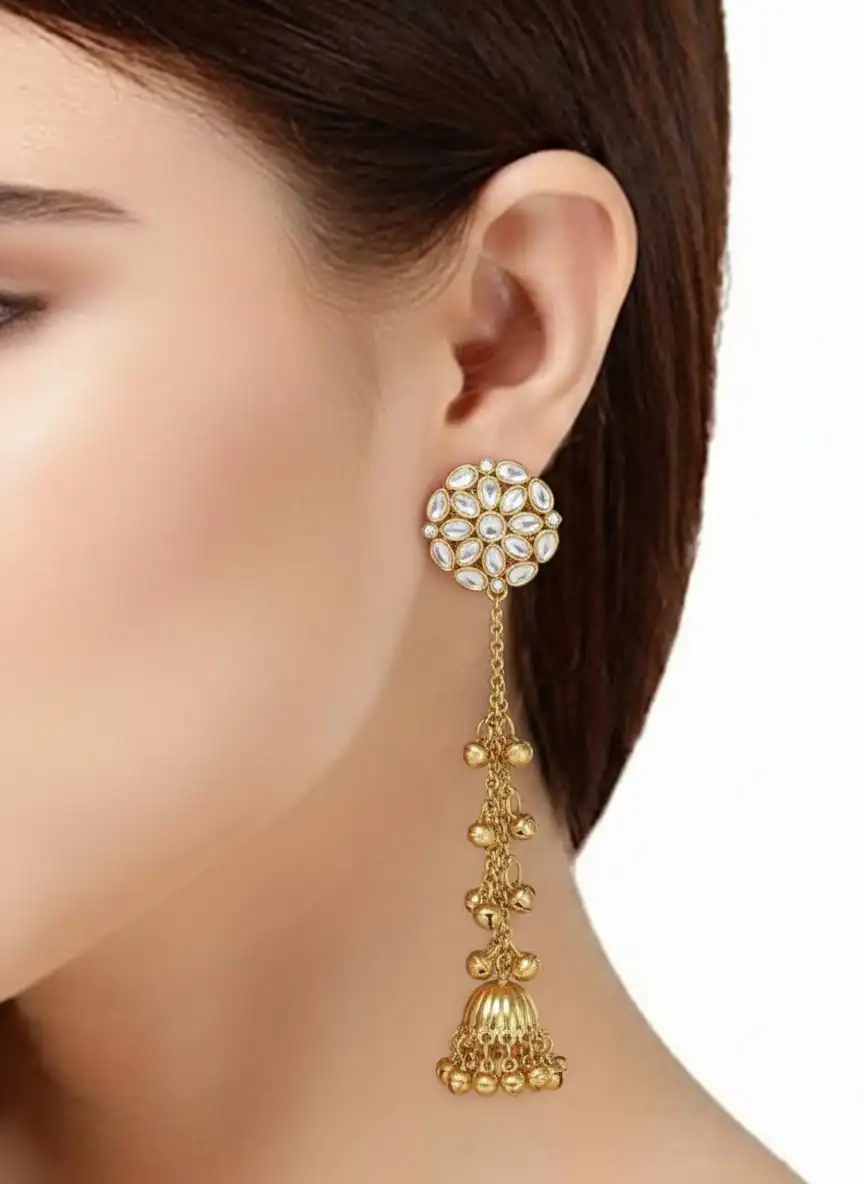 Whether paired with a saree, lehenga, gharara, or formal shalwar kameez, these earrings add regal charm and graceful movement to your look.