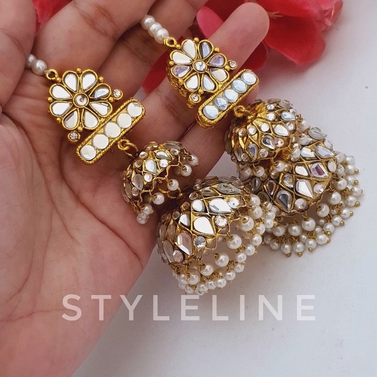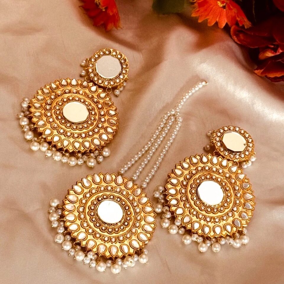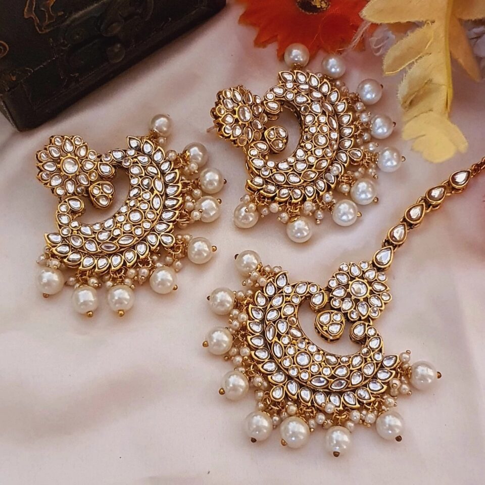 Handcrafted with exquisite detail and stunning elegance, this highest quality earrings and bindi set is the perfect accessory for party wear. Elevate your style with this unique and eye-catching ensemble that is sure to turn heads and make a statement.