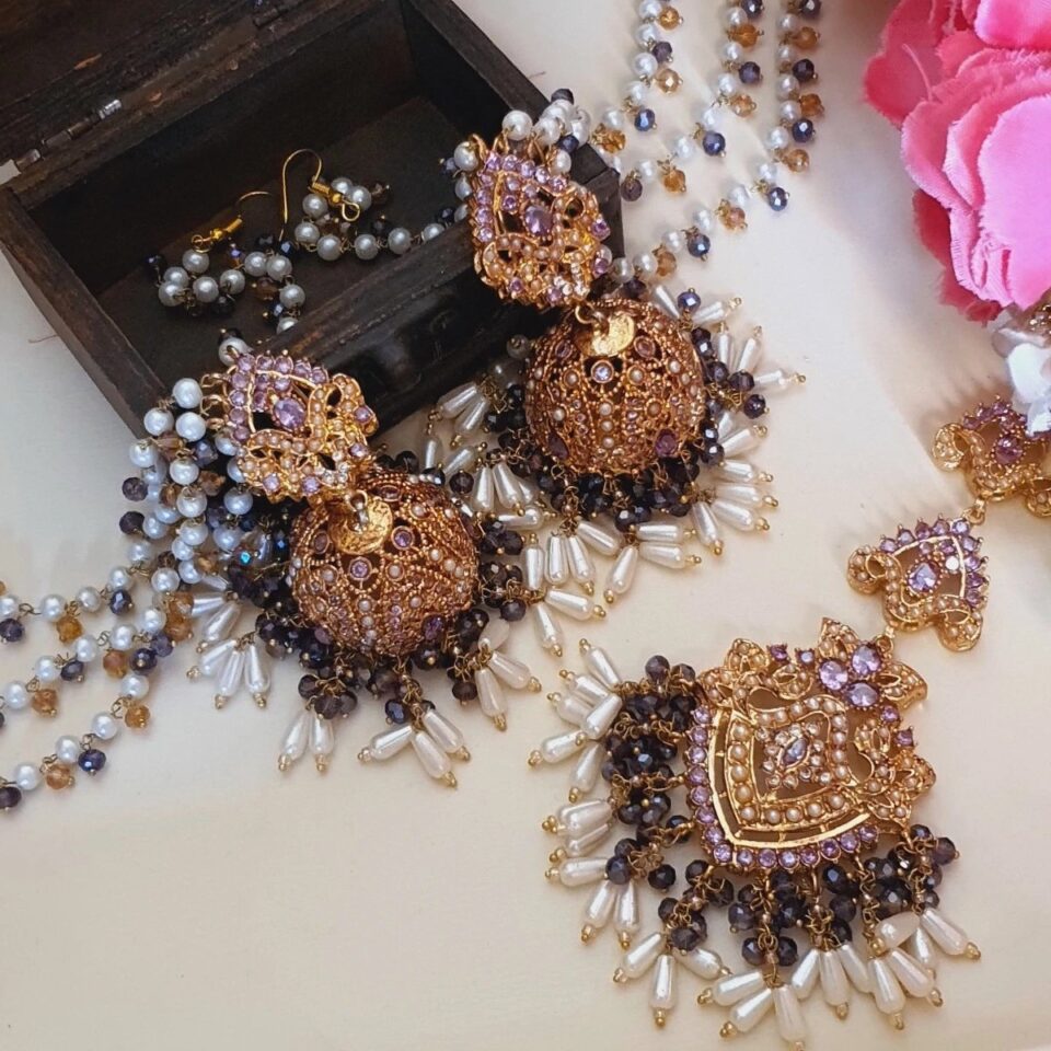 Handcrafted finest quality gold plated farshi kundun choker and earrings.