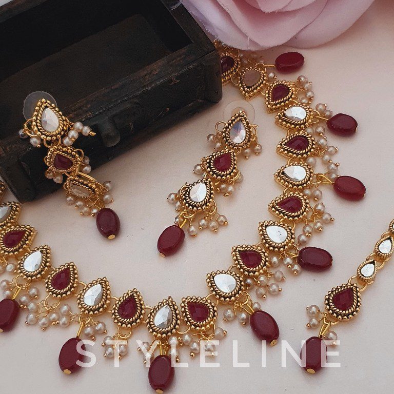 Light weight partywear choker/necklace set embellished with crystals and pearls.
