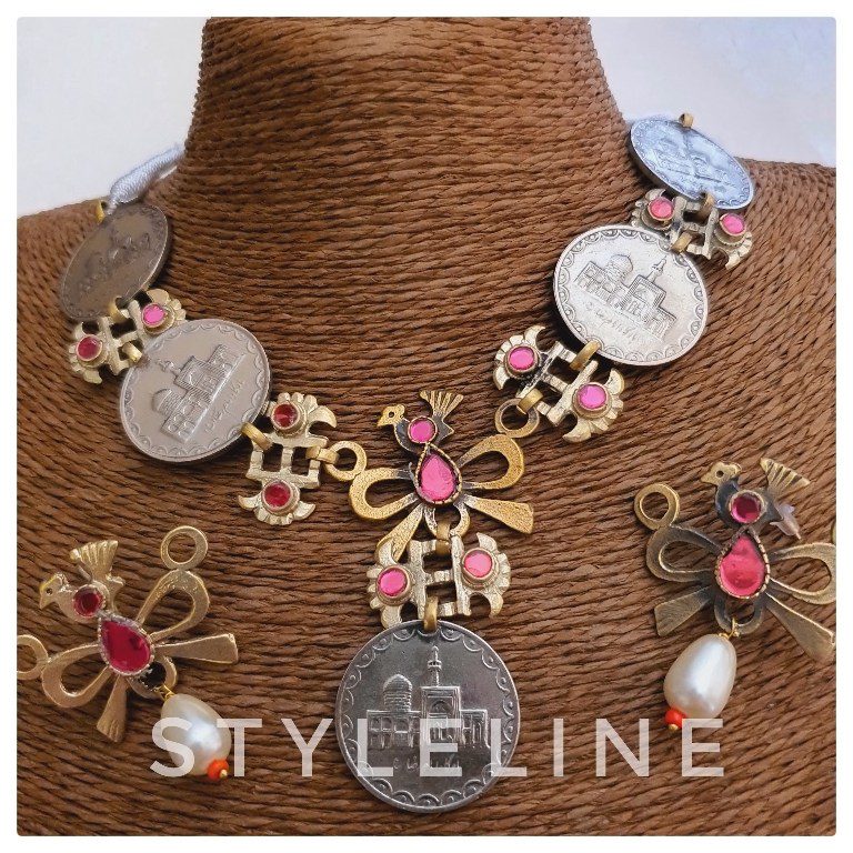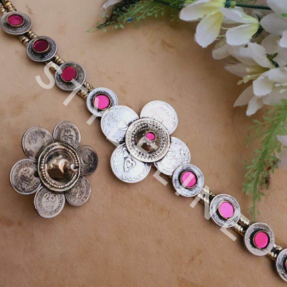 Finest quality handcrafted zircon studded necklace,earrings and bindi set.