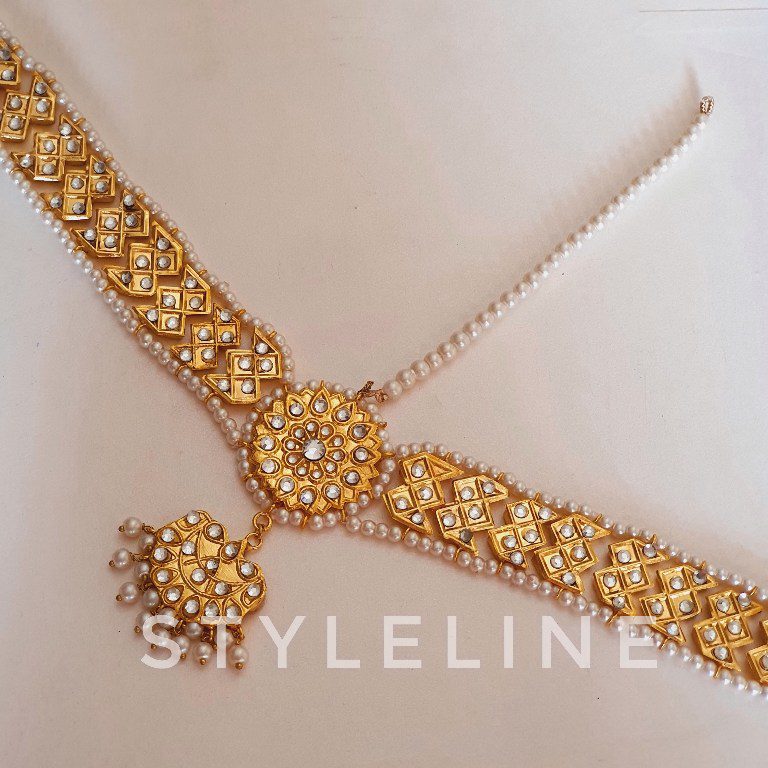Most trending and captivating headpiece of this festive season! Made in hand-cut sheesha work embellished with lustrous pearls to add some glamour and modernity to your entire look.