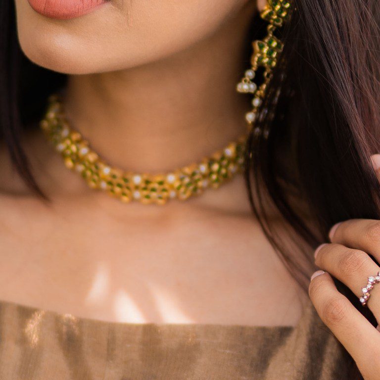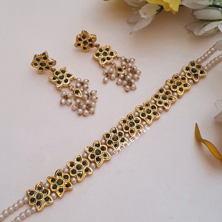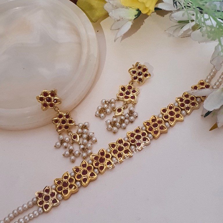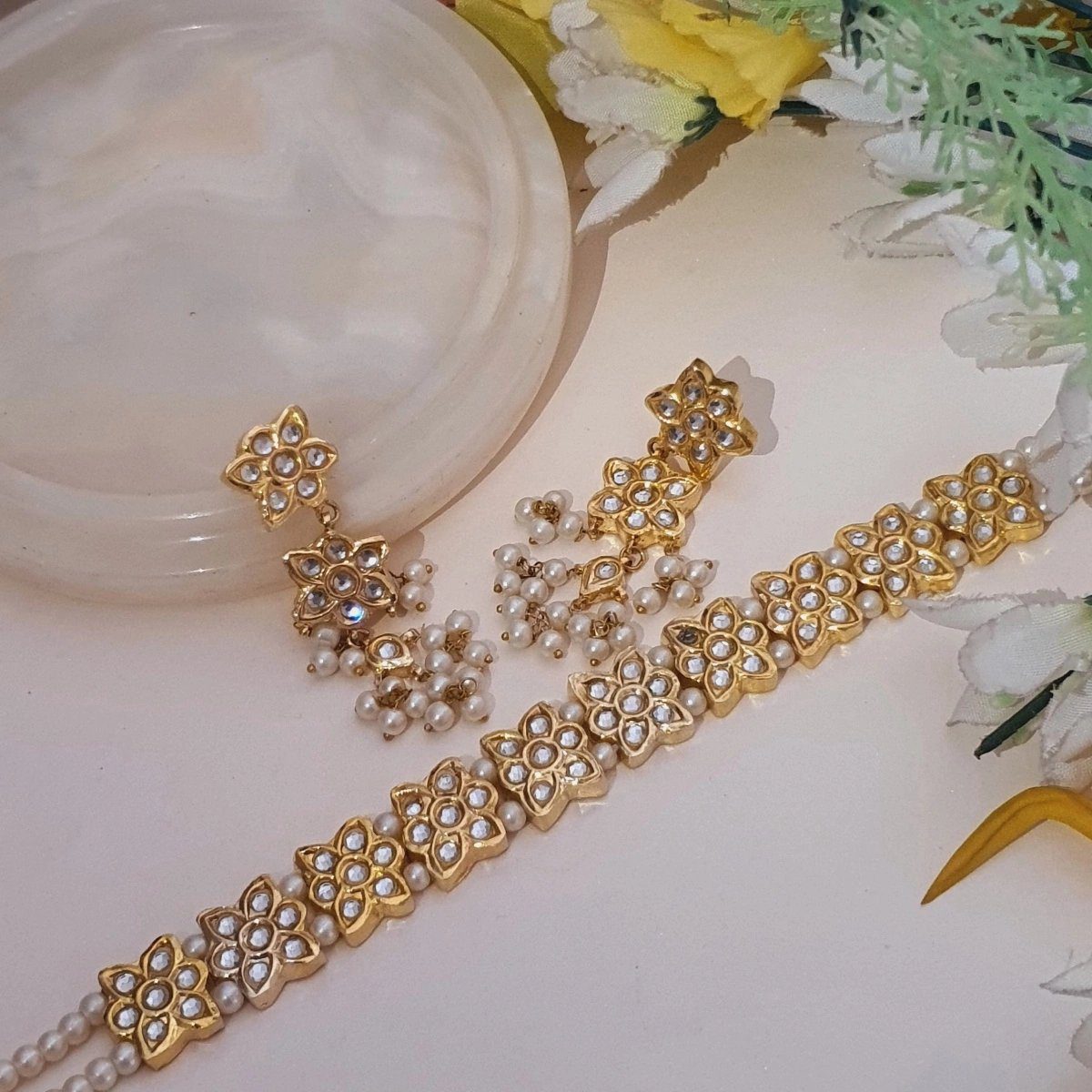 Finest quality thappa kundun choker set plated with 22k gold designed to enhance glamour and royalty inside you.