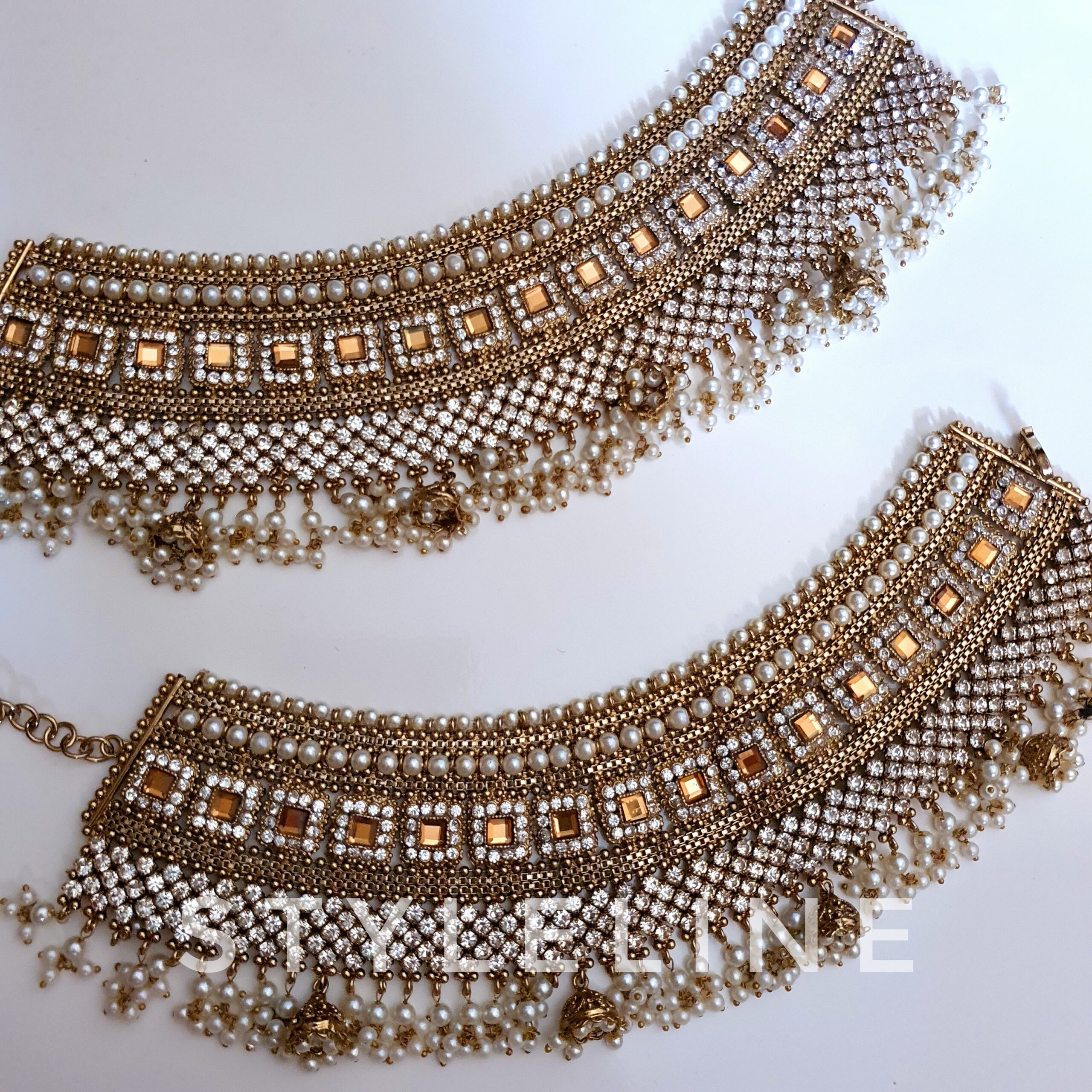 Handcrafted finest quality gold plated farshi kundun choker and earrings.