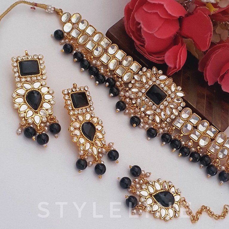 Introducing our exquisite Kundan Mala Set, handcrafted by our skilled artisans. This traditional set is a beautiful blend of modern elegance and ethnic charm, making it a perfect accessory for any occasion.