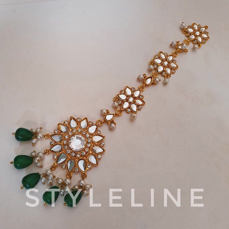 Lightweight bahwalpuri thappa workbindi/teeka in green color.