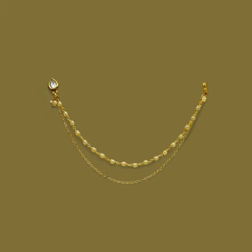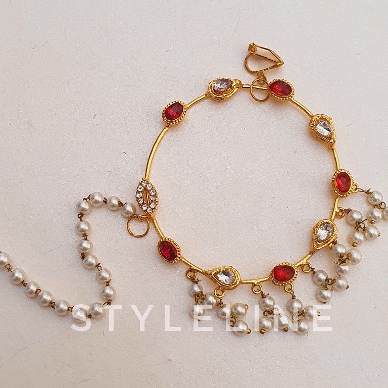 Step into your new life with the regal elegance of the Styleline Non-Piercing Bridal Nath. This handcrafted piece is the ultimate accessory for the contemporary Pakistani or Indian bride, offering the majestic look of a traditional nath without the requirement of a nose piercing.