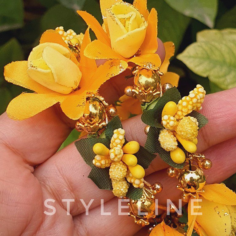 Handmade pair of artificial floral bangles.