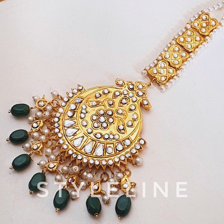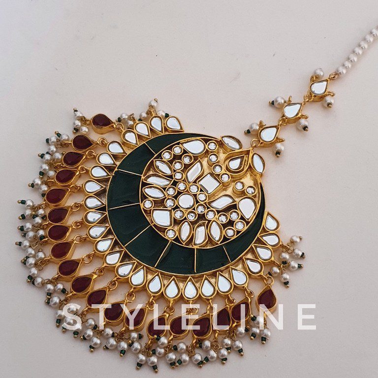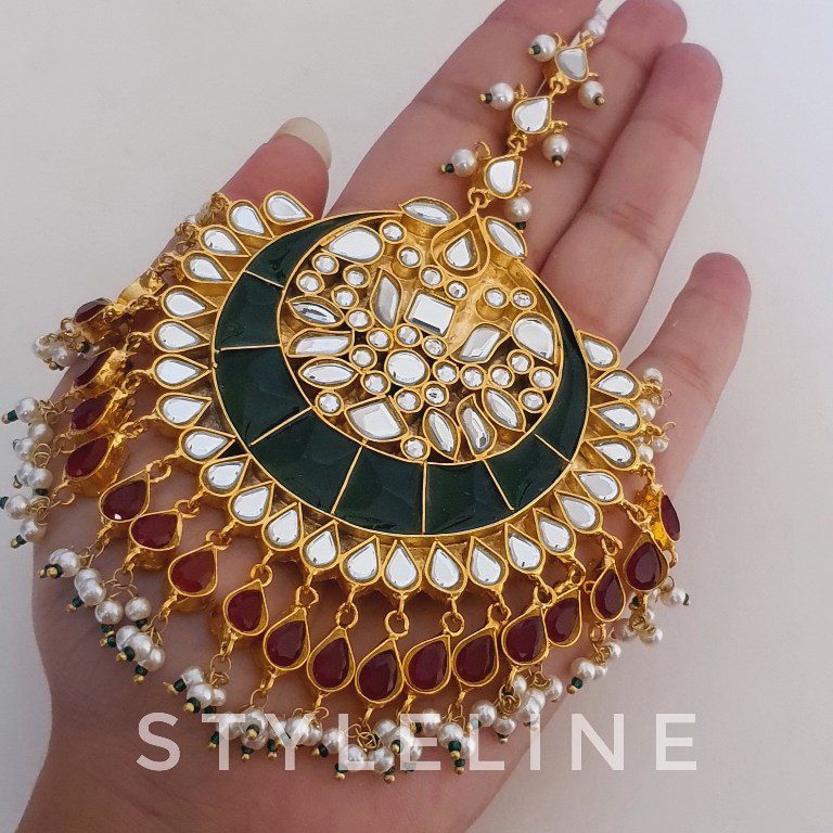Lightweight bahwalpuri thappa workbindi/teeka in green color.