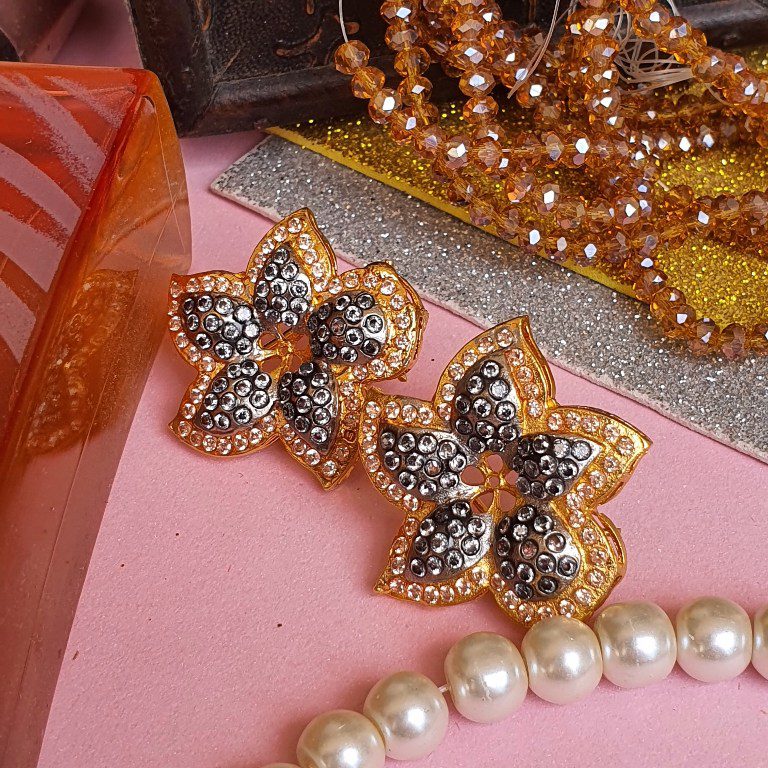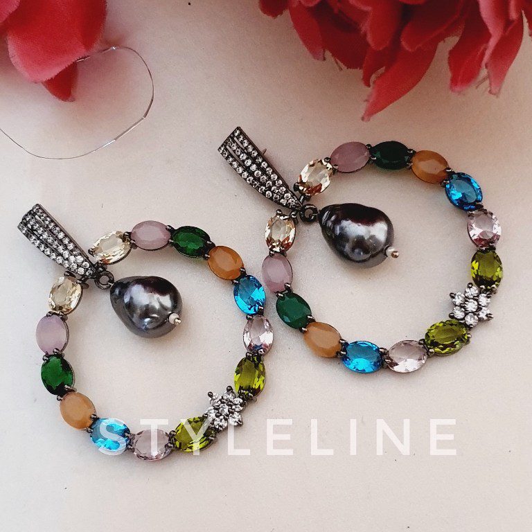Handcrafted earrings studded with semi precious stones and sparkling zircon.