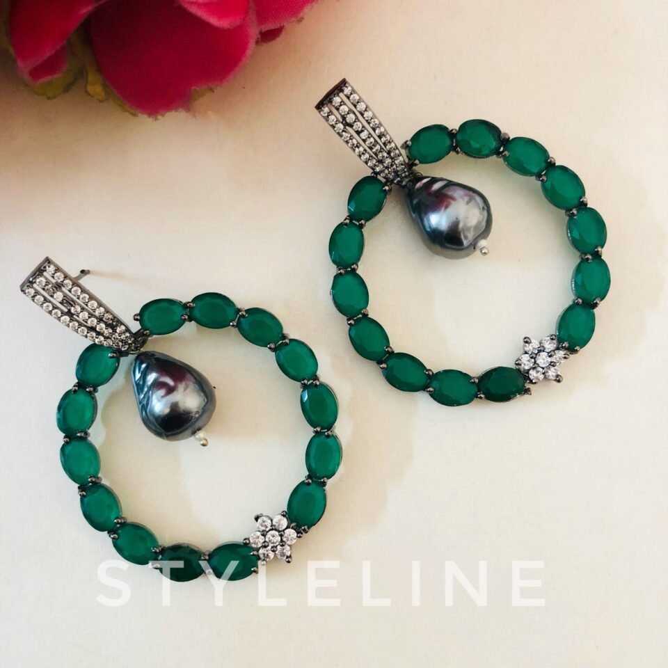Handcrafted earrings studded with semi precious stones and sparkling zircon.
