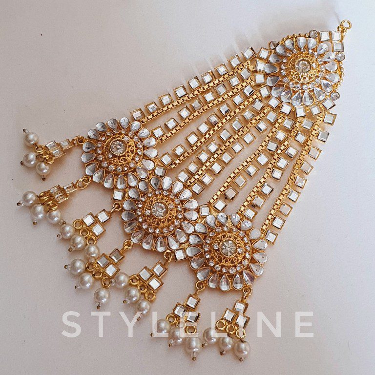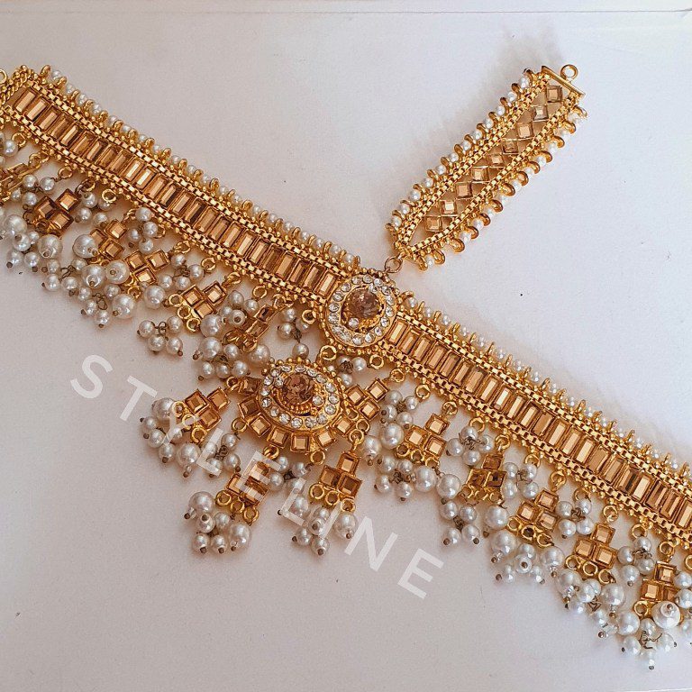 Add some sparkles to your hand with this most trending anja / hand harness embellished with zircons and pearl peroi. Findout more : Bangles & Bracelets Trending items