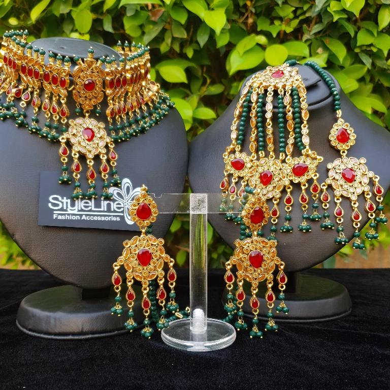 Handcrafted farshi kundun choker and earrings in 22k gold plating